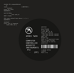 Del sitio http://www.hipersonica.com “Tal y como estaba previsto, Richard D. James ya ha empezado con el cargamento que tiene en casa. Hace un par de semanas Warp publicaba en su web que el viernes habÃa nuevo epé de Aphex Twin, Computer Controlled Acoustic Instruments pt2 EP (Warp, 2015). AsÃ, sin más; sin campañas publicitarias interminables. No queda otra, dado el material que en teorÃa tiene guardado, lo mejor va a ser ir soltando el ‘lastre’ directamente, si no vamos a tener Aphex Twin hasta en la sopa. Este se trata del primer lanzamiento post-Syro, hecho en parte con los artefactos electroacústicos con los que ha venido trabajando últimamente, según decÃa en las entrevistas concedidas en las fechas del regreso oficial.