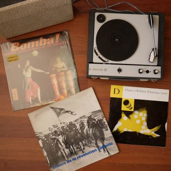 (Y en el bloque que sigue tendremos un invitado más toda su parafernalia sónica: Tocadiscos y discos un experimento sonoro sensorial y hasta sociológico, tendremos al presentador el programa Perspectivas a través de la nueva canción chilena”, Lucho Briceño, mostrándonos una pizca de su gran colección de rarezas discográficas)