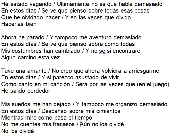 Este es el listado, con las lÃricas y traducciones si es el caso (una de sus traducciones pues hay variantes, con mucho cariño eso sÃ, los errores se perdonarán espero).